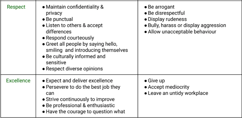 • AHS’s values and expected behaviours support ethical and responsible decision-making and a culture where all staff behave with integrity and respond appropriately if behaviour (at any level within an organisation) falls short of expectations.